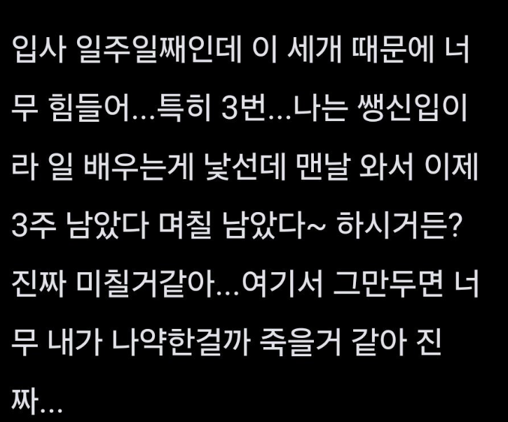 일주일 신입사원인데 내가 나약한거임? admin 댓글 남기기 이 포스팅은 쿠팡 파트너스 활동의 일환으로, 이에 따른 일정액의 수수료를 제공받습니다. 글 네비게이션 이전 글모ㅌ 여자방 잘못 들어갔다가 생긴 일다음 글서울 사는 친구와 손ㅈ한 이유 ㄷㄷ 답글 남기기 응답 취소이메일 주소는 공개되지 않습니다. 필수 필드는 *로 표시됩니다댓글 * 이름 * 이메일 * 웹사이트 다음 번 댓글 작성을 위해 이 브라우저에 이름, 이메일, 그리고 웹사이트를 저장합니다. shgus001@gmail.com