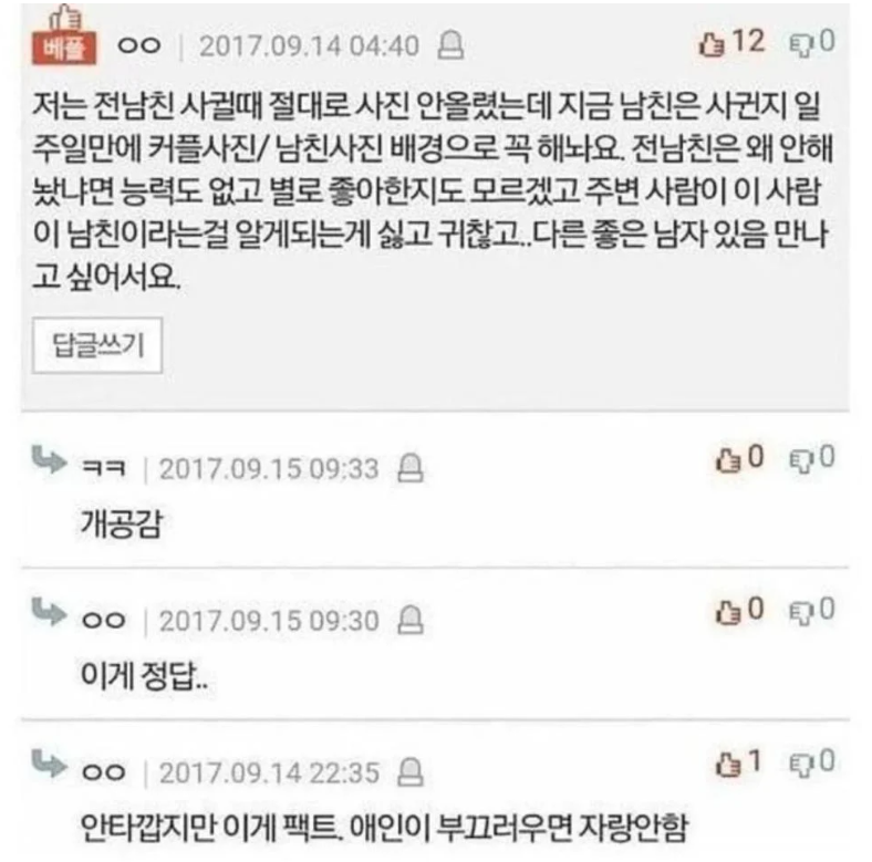 남자친구로 프사 안 해놓는 여자들 특징 admin007 댓글 남기기 이 포스팅은 쿠팡 파트너스 활동의 일환으로, 이에 따른 일정액의 수수료를 제공받습니다. 글 네비게이션 이전 글미용실 누나한테 당한 썰다음 글남자들 물 빼는 방법이 궁금하다는 여사친 답글 남기기 응답 취소이메일 주소는 공개되지 않습니다. 필수 필드는 *로 표시됩니다댓글 * 이름 * 이메일 * 웹사이트 다음 번 댓글 작성을 위해 이 브라우저에 이름, 이메일, 그리고 웹사이트를 저장합니다. shgus001@gmail.com