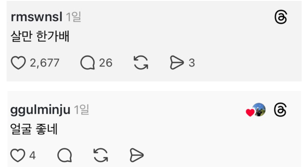 경상도말로 “과체중같다”를 기분나쁘지않게 말하면 admin007 댓글 남기기 이 포스팅은 쿠팡 파트너스 활동의 일환으로, 이에 따른 일정액의 수수료를 제공받습니다. 글 네비게이션 이전 글엘리베이터 정원 초과되자 임산부한테 내리라던 놈 참교육했다다음 글트위터에서 난리난 이미주 갸루 코ㅅ프레 답글 남기기 응답 취소이메일 주소는 공개되지 않습니다. 필수 필드는 *로 표시됩니다댓글 * 이름 * 이메일 * 웹사이트 다음 번 댓글 작성을 위해 이 브라우저에 이름, 이메일, 그리고 웹사이트를 저장합니다. shgus001@gmail.com