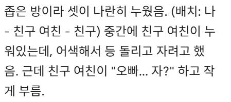스릴을 좋아하는 친구의여자친구… admin007 댓글 남기기 이 포스팅은 쿠팡 파트너스 활동의 일환으로, 이에 따른 일정액의 수수료를 제공받습니다. 글 네비게이션 이전 글세무사가 본 찐부자들의 공통점.jpg다음 글6년만난 여자친구가 모ㅌ에서 나왔습니다… 답글 남기기 응답 취소이메일 주소는 공개되지 않습니다. 필수 필드는 *로 표시됩니다댓글 * 이름 * 이메일 * 웹사이트 다음 번 댓글 작성을 위해 이 브라우저에 이름, 이메일, 그리고 웹사이트를 저장합니다. shgus001@gmail.com