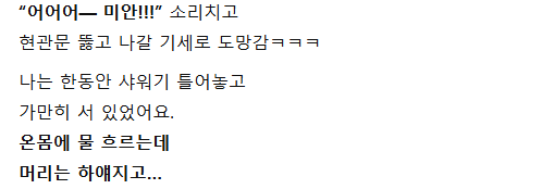 샤워 중인데 친구 여동생이 갑자기 문 열고 들어온 썰