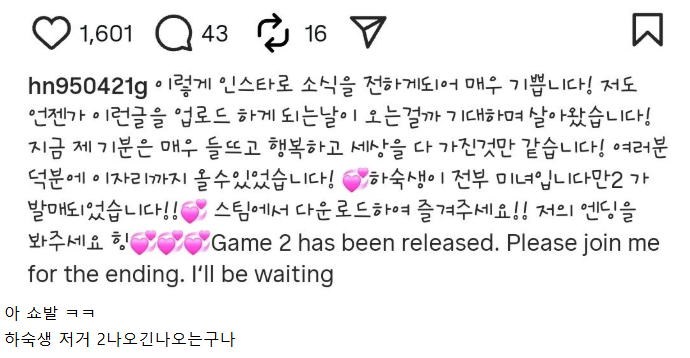 오늘 고말숙 인스타에 올라온 소식…