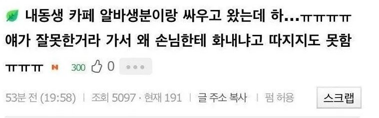 동생이 카페 알바랑 ㅆ운 이유…