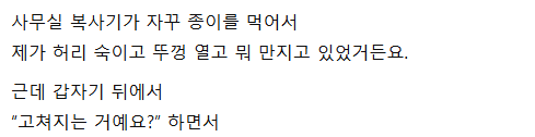 복사기 고치러 갔는데 뒤에 여직원이 딱 붙어서…